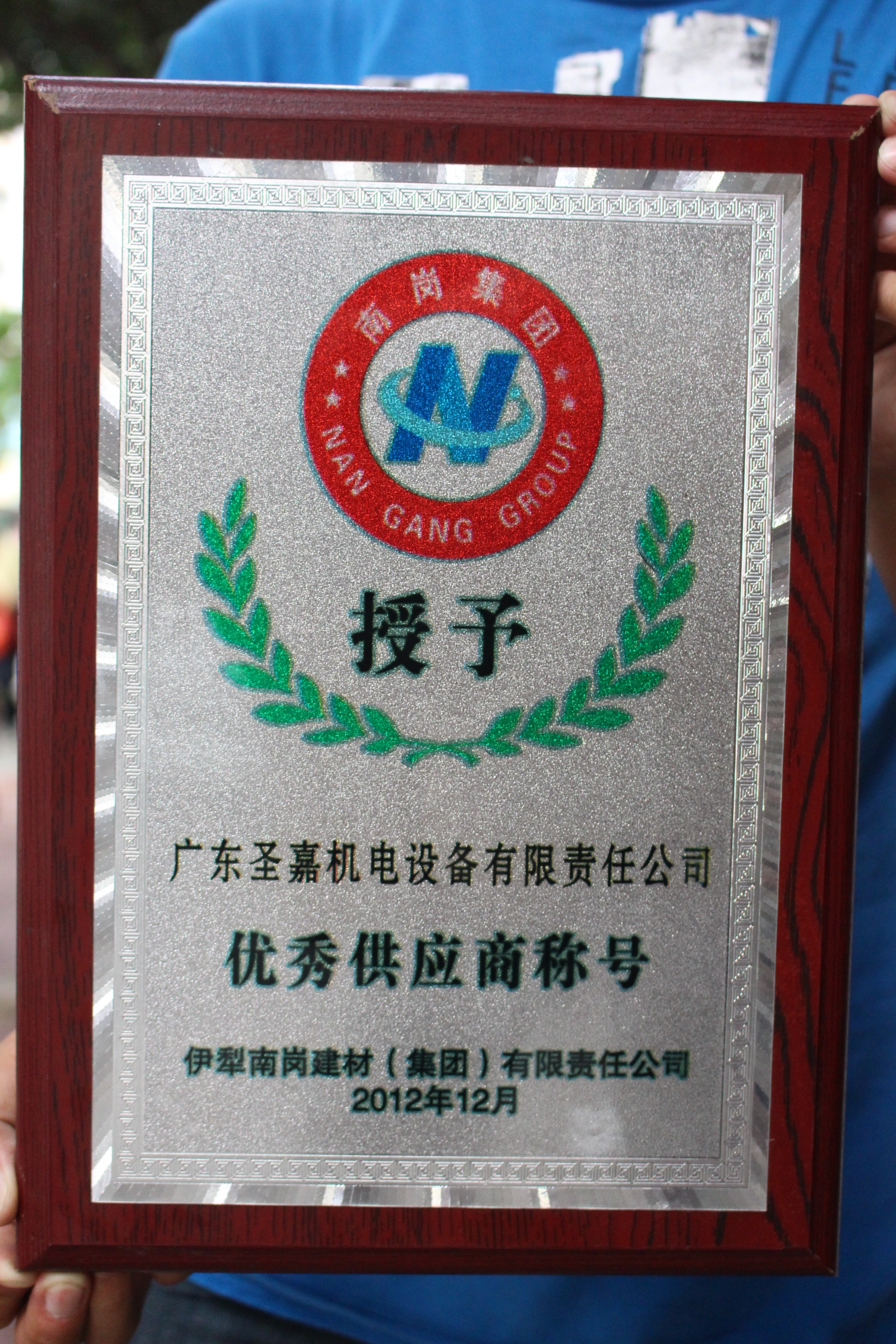 近日,從伊犁南崗建材集團(tuán)傳來喜訊,在集團(tuán)公司年終召開的合作單位答謝會(huì)上,特別給廣州圣嘉機(jī)電設(shè)備有限公司公司頒發(fā)了“優(yōu)秀供應(yīng)商”獎(jiǎng)牌和獎(jiǎng)金5000元。這是繼2011年廣州圣嘉第一次獲得伊犁南崗建材集團(tuán)優(yōu)秀供應(yīng)商榮譽(yù)稱號(hào)后,今年再度獲得此項(xiàng)殊榮。